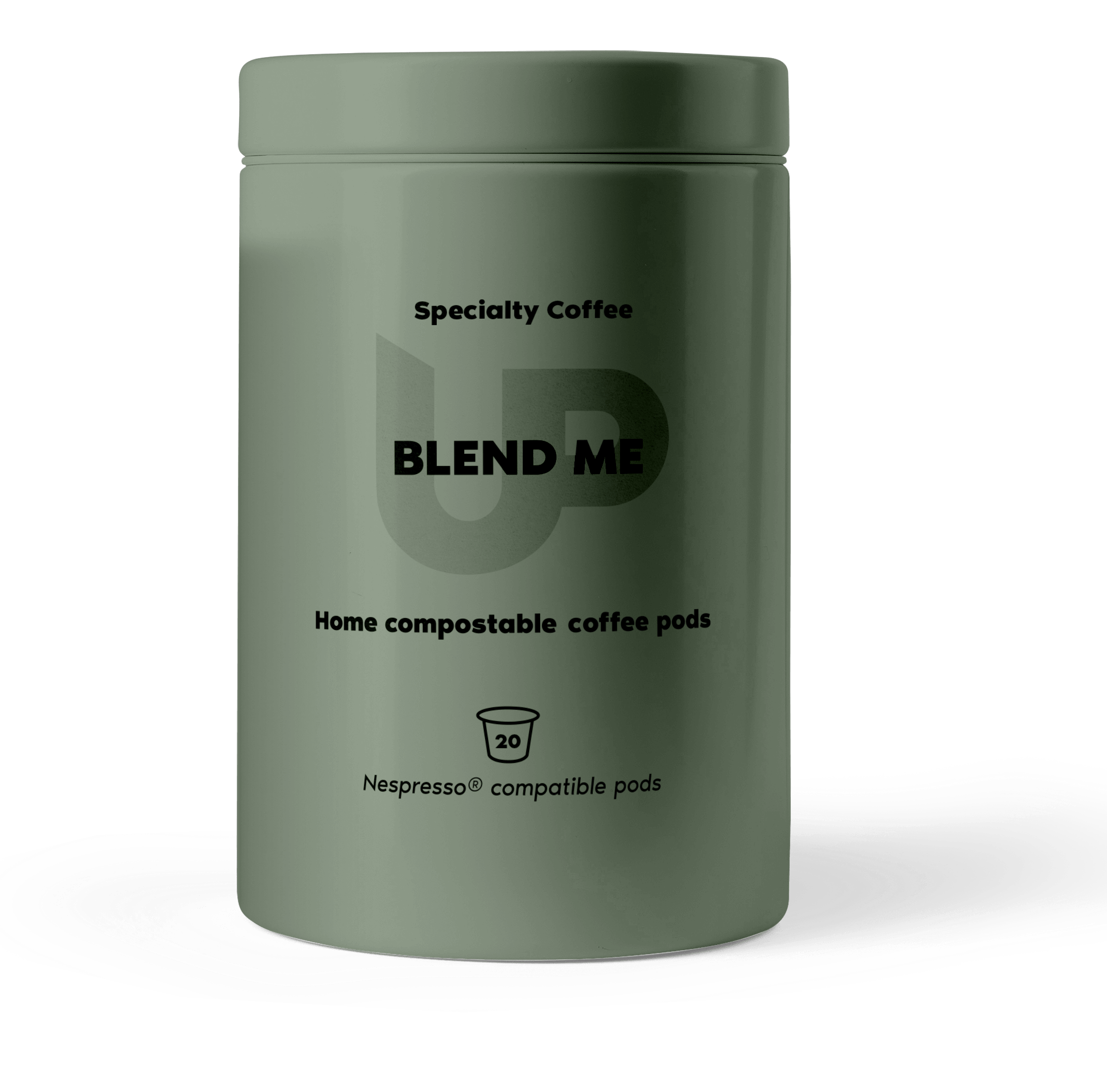 Aluminijaste in plastične kavne kapsule so preteklost, BLEND ME UP pa vam ponuja prihodnost. Naše kavne kapsule so polnjene s specialty grade kavo in se na domačem kompostu razgradijo v 26 tednih.